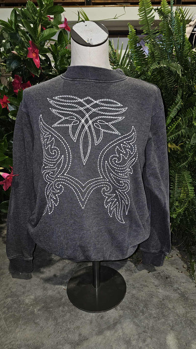 Western Embroidered Sweatshirt - Black