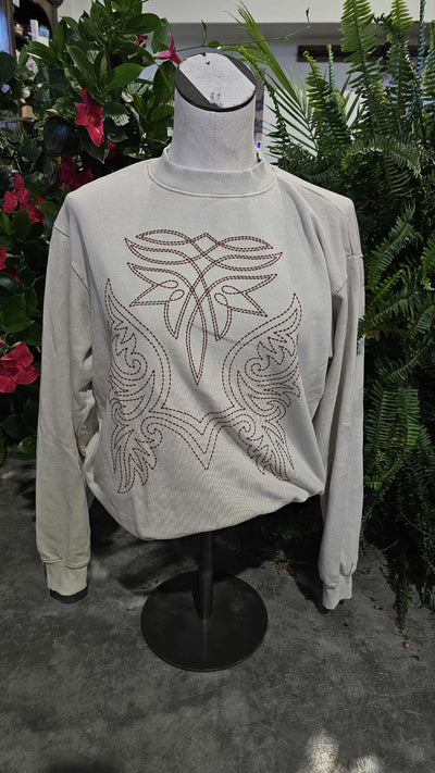 Western Embroidered Sweatshirt - Oatmeal