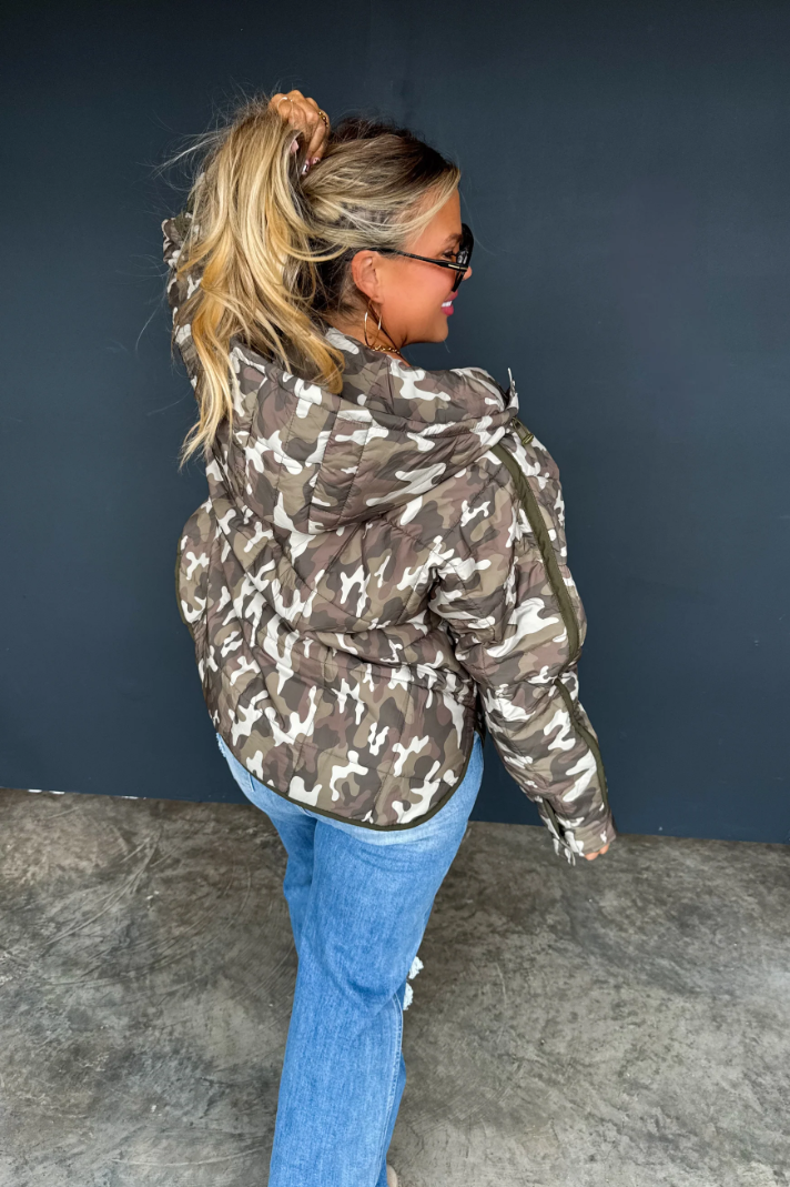 Stay warm in bold style with the ultra-cozy printed design Peyton puffer jacket. Has a hidden kangaroo zip front pocket, snap button neckline, two side pockets, and a hoodie with pull tabs. Its high-quality material is perfect and now comes in these amazing prints. The insulated, quilted design keeps you warm on chilly days, while the curved hem and relaxed fit add comfort and movement. Perfect for layering over your favorite basics for a cool, casual look.